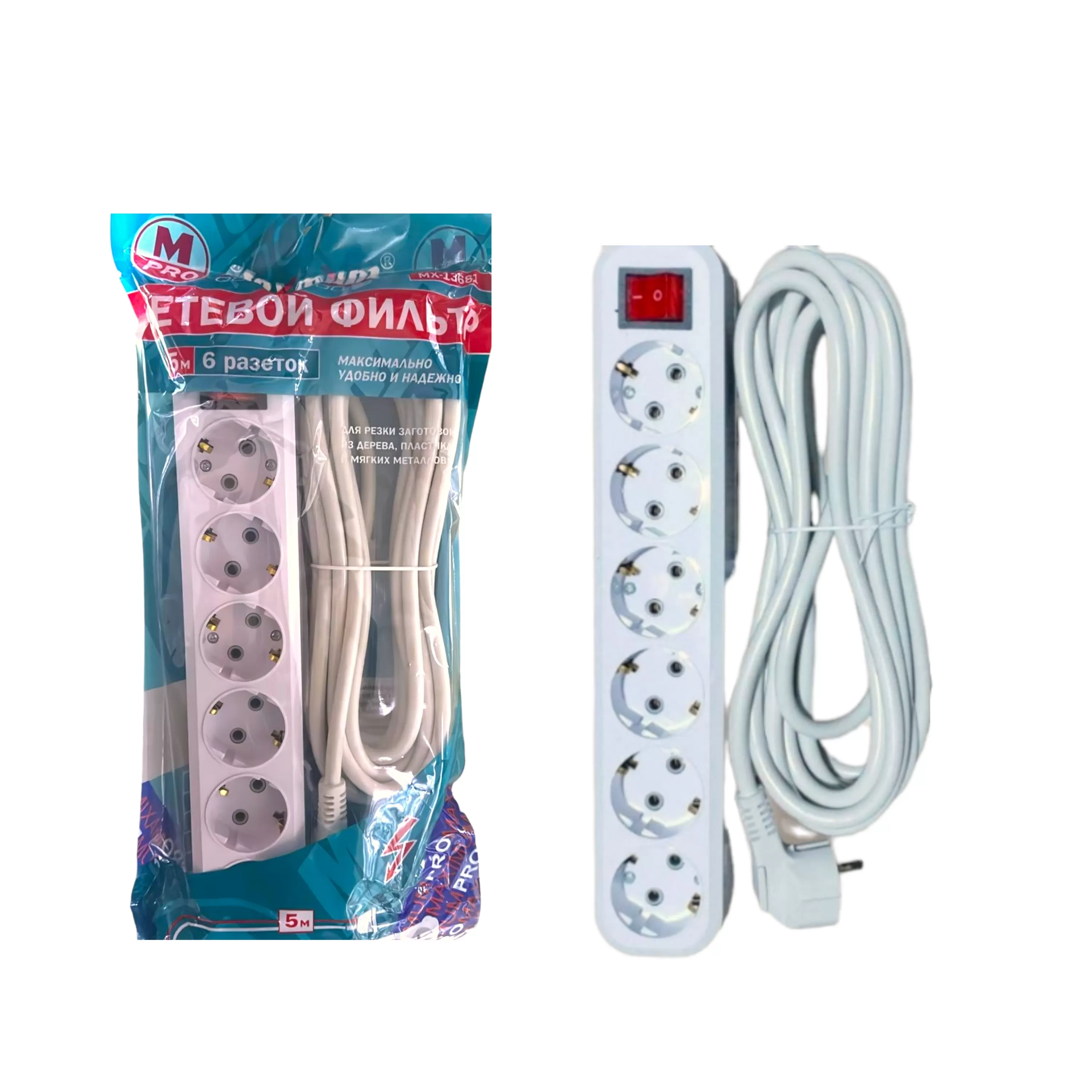 Сетевой фильтр 5 метров от "MAXIMUM QUALITY TOOLS" создан с 6 розетками и евровилкой. Корпус выполнен из белого негорючего АБС-пластика и подходит для использования только внутри помещений-степень влагозащиты IP 20. Розетки с заземлением расположены под углом 45 градусов.