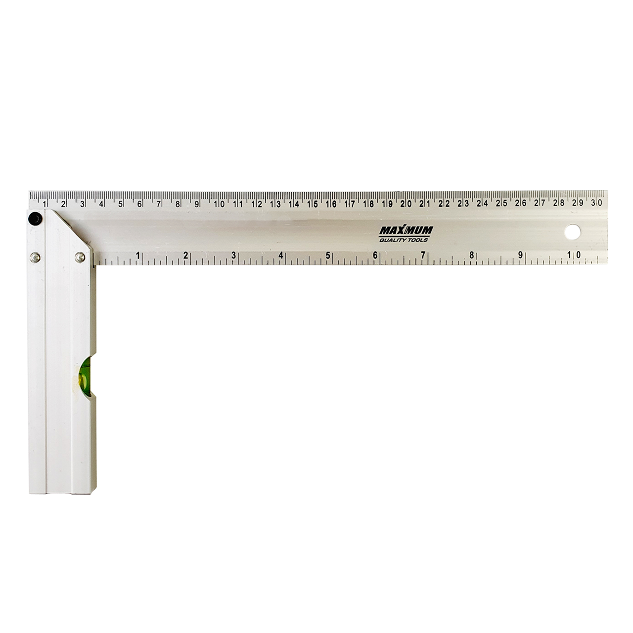 Полотно угольника 300 мм надежно прикреплено к ручке и оснащено специальным отверстием для хранения инструмента в подвесном состоянии.