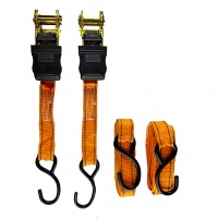 Ремни для стяжки и крепления груза с храповым механизмом и крюками созданы для перевозки и транспортировки багажа, также используются для обвязки, а также крепления небольших грузов (коробки, мебель и т.д.) к верхнему или прицепному багажнику легкового автомобиля, фургона и других транспортных средств. Малый вес и небольшие размеры (в сложенном состоянии) значительно облегчают хранение и транспортировку ремней. Прочная широкая лента из полипропиленовых нитей двойного плетения не деформирует фиксируемый груз и имеет относительное удлинение не более 7 % при максимально допустимой рабочей нагрузке. Храповик багажных ремней имеет пластиковое покрытие и оснащен удобным механизмом разблокировки. Надежный зубчатый механизм предотвращает ослабление натяжения ремня во время движения транспорта. Крюки и храповый механизм выполнены из прочной стали.