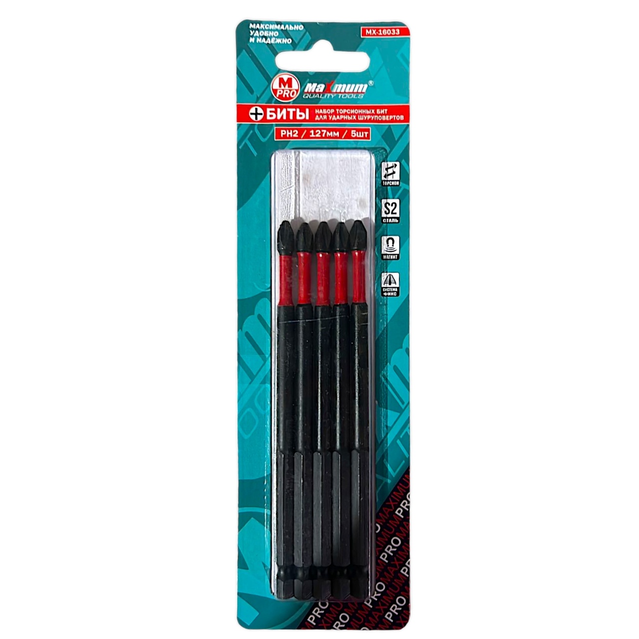 Торсионная удлинённая бита 127 мм от "Maximum Quality Tools" за счет эффекта скручивания способна к работе на высоких скоростях. Намагниченный шлиц PH2 обеспечивает дополнительное удобство в работе, а также предотвращает выскальзывание, что препятствует повреждению биты и крепежа. Биты изготавливаются из стали высшего качества марки S2, что обеспечивает увеличенный срок службы. Биты выдерживают существенный крутящий момент и ударные нагрузки.